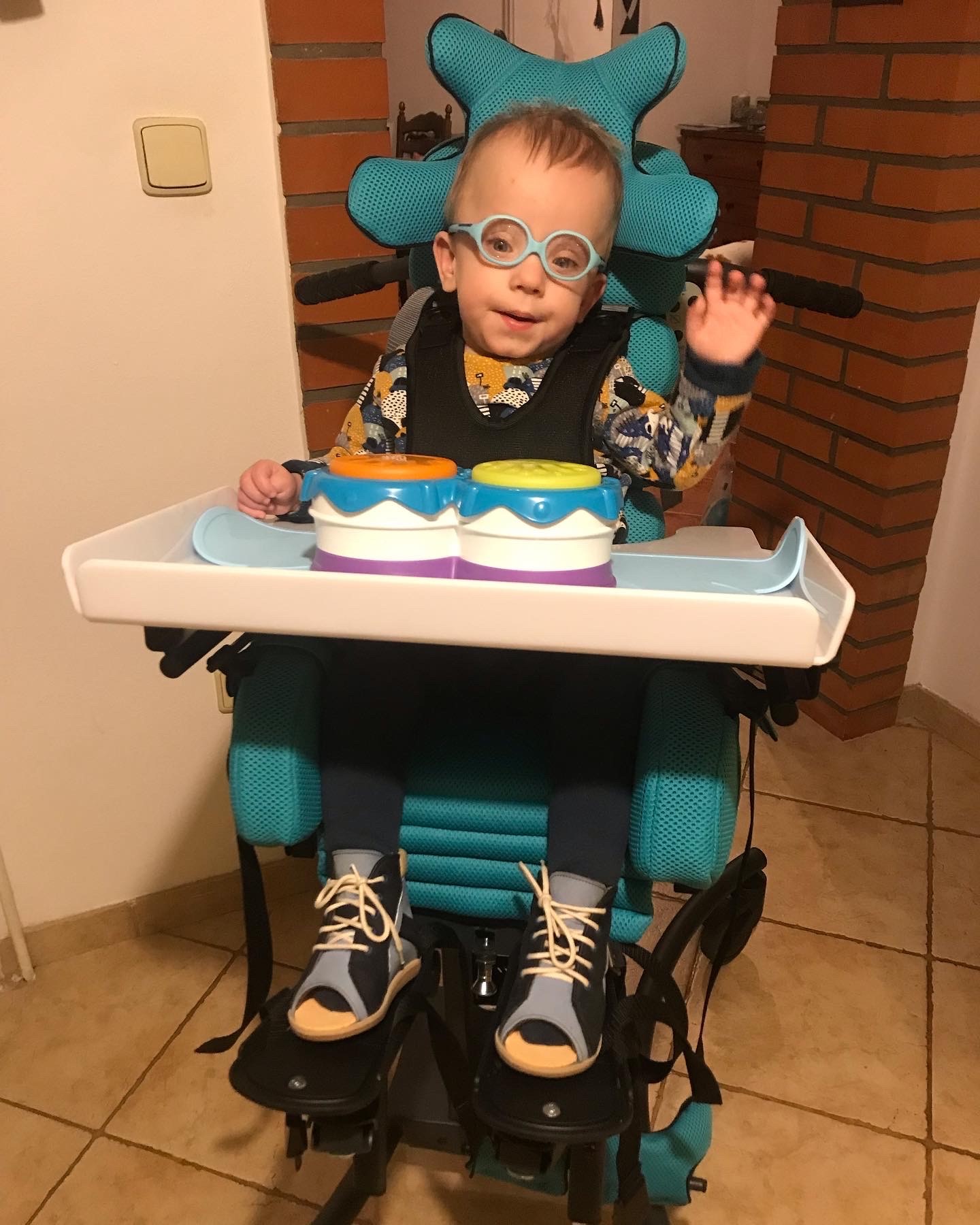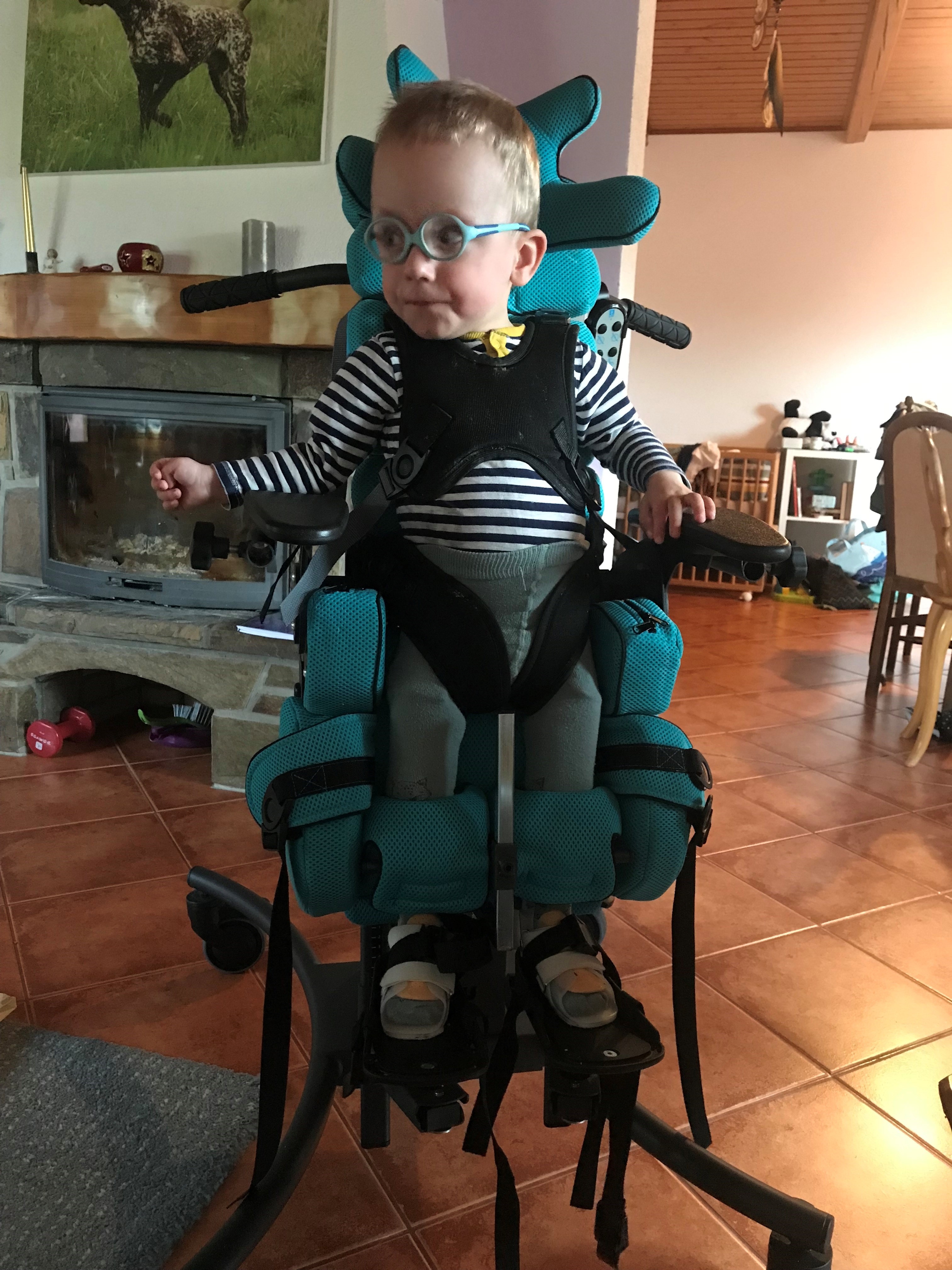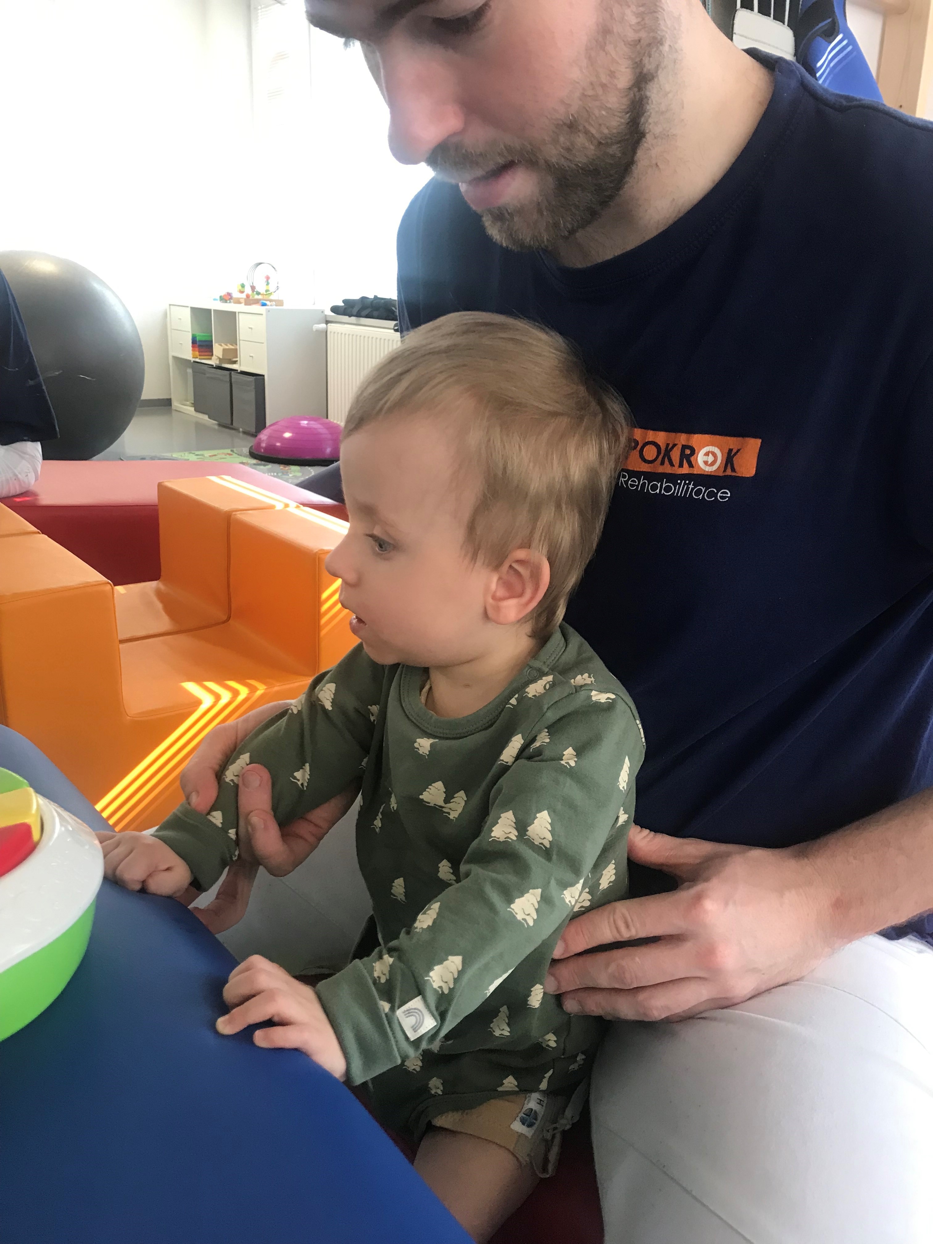 Pravda je, že jsem byl takový malý uzlíček, co byste také čekali od 900 ga 30 cm. To vše bych asi zvládl, ale druhý den po porodu to začalo být složité. Zjistili u mě vrozenou vadu, artézii jícnu. I toto bych dobře zvládla, artézie je řešitelná, ale jak jsem už zmínila začátek, moje opravdu porodní váha a míra byly malé, proto byla operace velmi riskantní. Představte si, držím i jeden rekord, ve FN Ostrava jsem byl nejmenším operovaným pacientem s touto vadou. Zákrok jako takový dopadl dobře, doktoři odvedli dobrou práci, ale bohužel důsledky operace na tom mém malém tělíčku na sebe nenechaly dlouho čekat. Týden po operaci zjistil, že jsem krvácel do mozkových komor. A tady začíná můj příběh nabírat opravdový sešup. Následovala celková sepse organizmu, která už jen umocnila nález na mozku a diagnóza hydrocefalu se stala nedílnou součástí mého života. Hydrocefalus znamená nadměrné hromadění mozkomíšního moku v mozkových komorách. Přebytečný mok tlak na mozkovou tkáň a tím může dojít k poškození mozku s trvalými následky. Konečným řešením bylo zavedení VP šuntu, který má za úkol odvádět nahromaděný mozkomíšní mok z hlavy do břicha. Zní to zvláštně, že? A to si představte, budu ho mít již na celý život. Takový můj životní přítel. Ne, nebudu Vám povídat, jak jsem se již těšil domů, ale než k tomuto mohlo dojít, musel jsem absolvovat osm operací, a celkem šest z nich jich bylo jen mé hlavičky. Vše to trvalo celého půl roku. Dostali jsme se s maminkou konečně domů, ale to bych nebyl já, aby to bylo jen tak. Diagnostikovali mi těžkou epilepsii a dětskou mozkovou obrnu v podobě centrální spastické kvadruparézy a axiální hypotonii. No jo, spoustu cizích pojmů, čert aby se v tom vyznal. S maminkou navštěvujeme intenzivní rehabilitaci a terapii, které mě velmi pomáhají. Občas, ehm tedy často, je to tvrdé, ale já vím, že mi to pomáhá. Inu, nic není zadarmo. Zanedlouho sice oslavím dva roky, ale jsem zatím na úrovni půl ročního sviště. Můj psychomotorický vývoj je totiž opožděný, převít jeden. Maminka vše proto, aby mě posunula dále. Správně zvolené pomůcky a metody poskytují velkou šanci mi jednou dostat na nohy. Už aby to bylo. Maminka proto maximum, ale bohužel je to vše finančně velmi náročné.